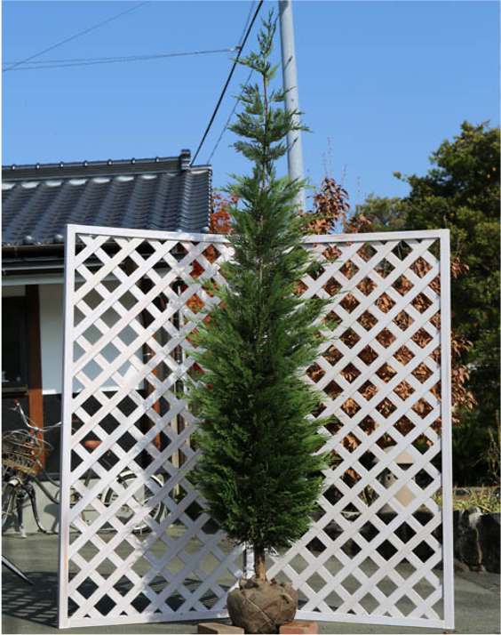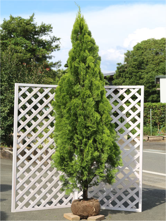 また、スマートな狭円錐形の樹形なので、狭い空間での植栽や生垣樹に最適です。
