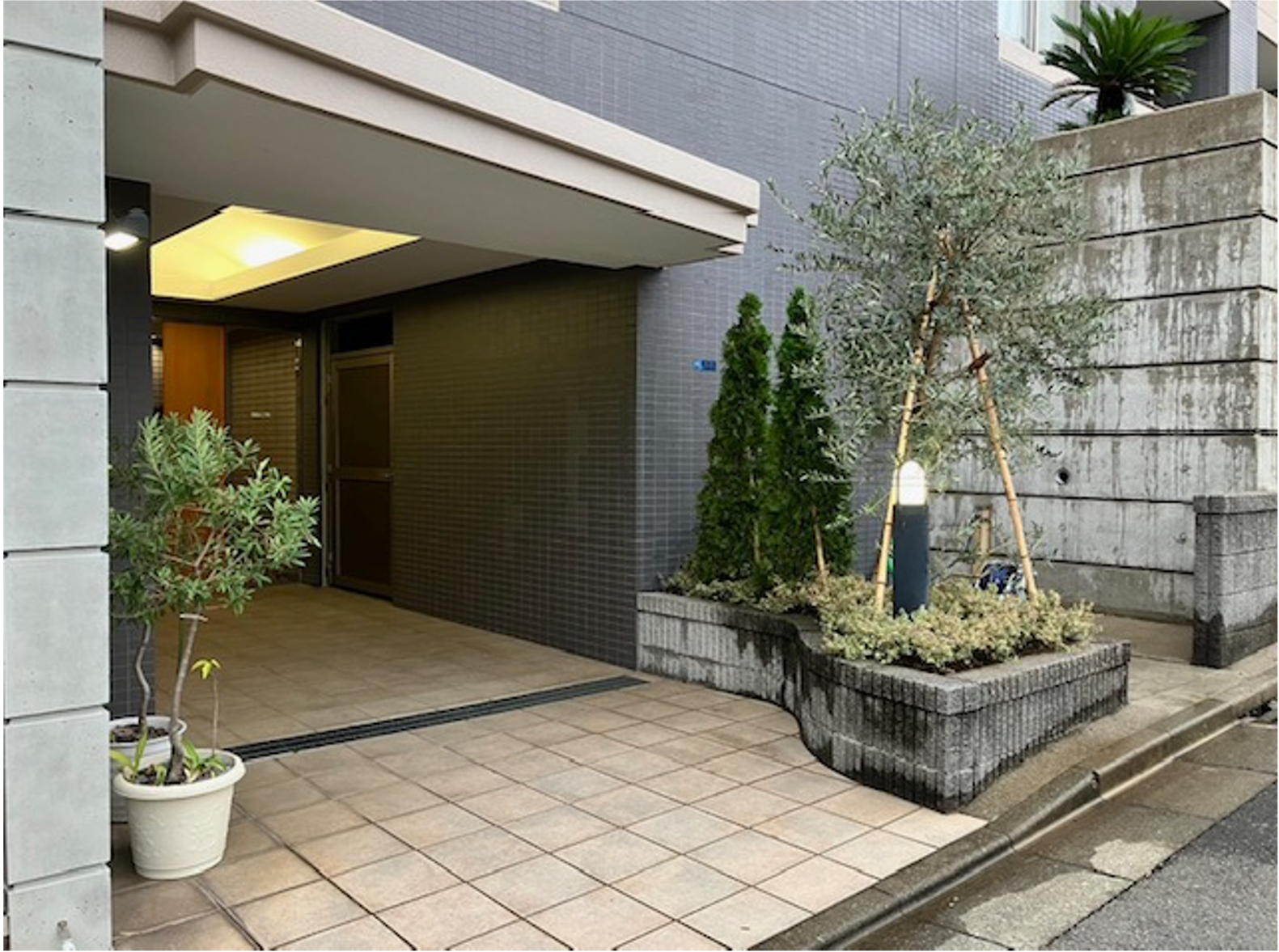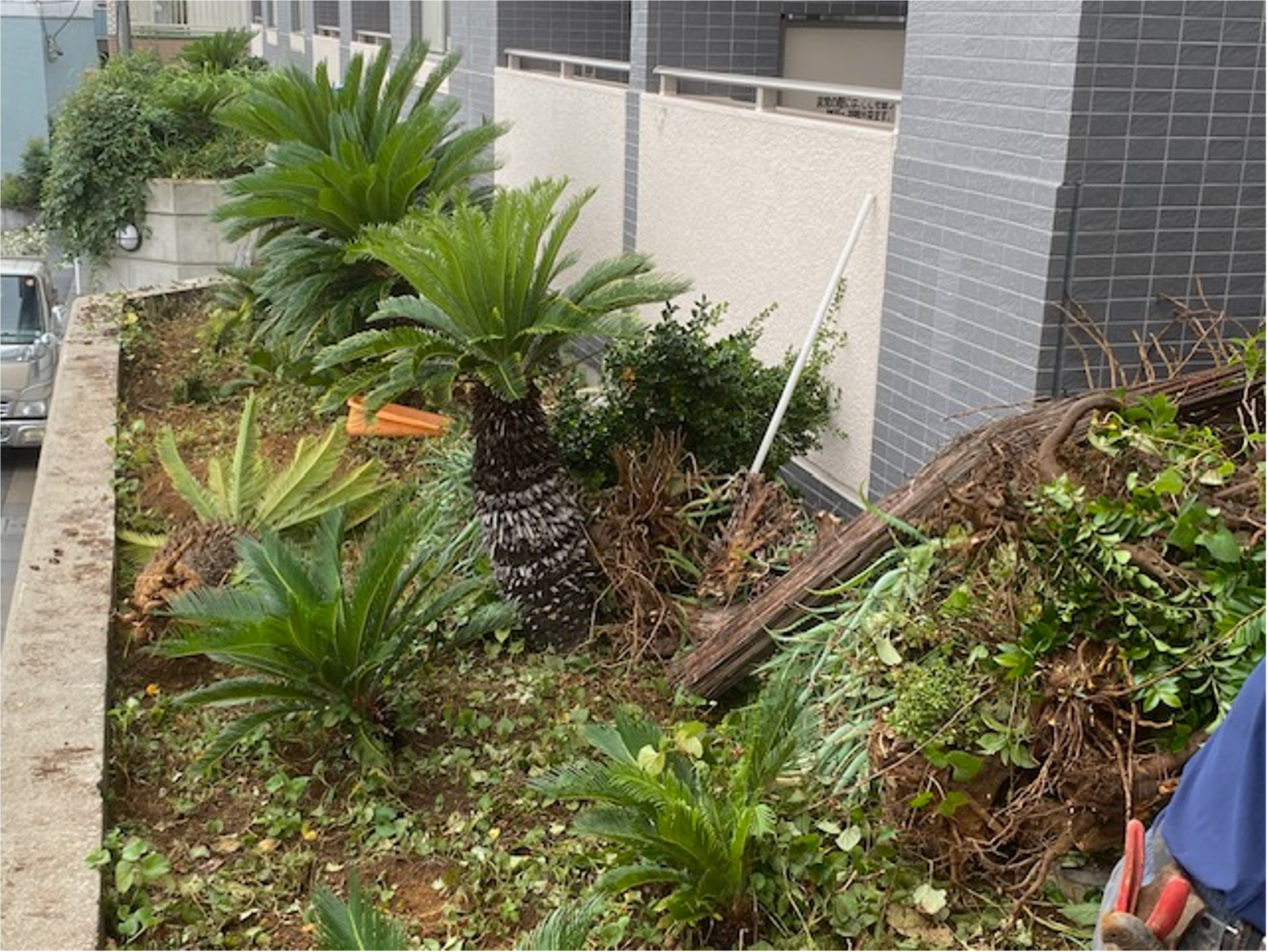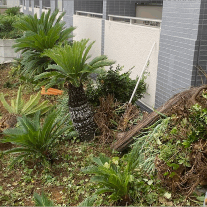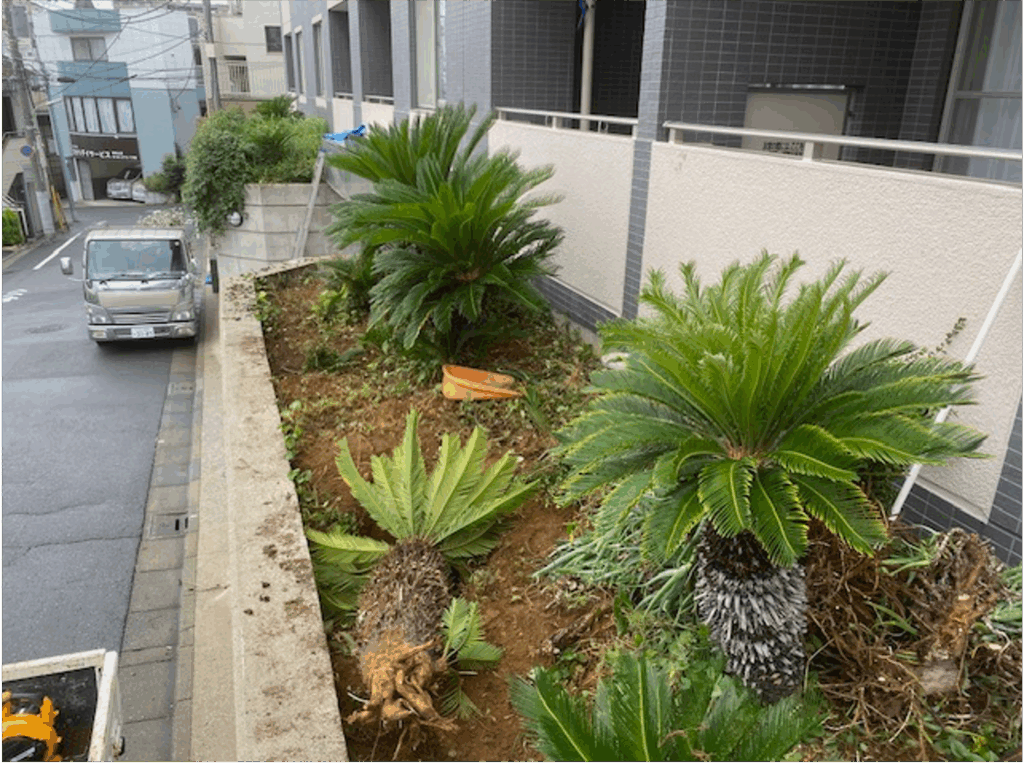 大田区 集合住宅 施工後 施工後 施工後 施工後 施工後 存在感のある大きなシンボルツリーは、地域のランドマーク! 都内の高級住宅地の高台に建つ低層マンション。エントランス前の花壇には傷んだツツジ、ツゲなどの低木類、道路側の2階に設置された広い花壇にはソテツとツゲ、ツツジなどの中低木が雑然と植えてあるだけといった、おしゃれで重厚な外観に対して、メリハリに乏しい植栽構成でした。そこでエントランス前の花壇を葉張りたっぷりのオリーブとコニファー、足回りはコンフェッティとシンプルな洋風にチエンジ。2階の花壇はソテツ以外は全部撤去したのち、シンボルツリーとして大人気のココスヤシを植栽しました。床面には防草シートを張ってから上にシックな砂利をかぶせたので防草対策はバッチリです。今後は表に「ヤシ」がドーンと鎮座するマンションとして、地元で認識されるに違いありません。 BEFOR AFTER 施工例名 大田区 集合住宅 工事内容 リ・ガーデン工事 場所 大田区 集合住宅 コンセプト 外観に釣り合う植栽構成を探求! お問い合わせ
